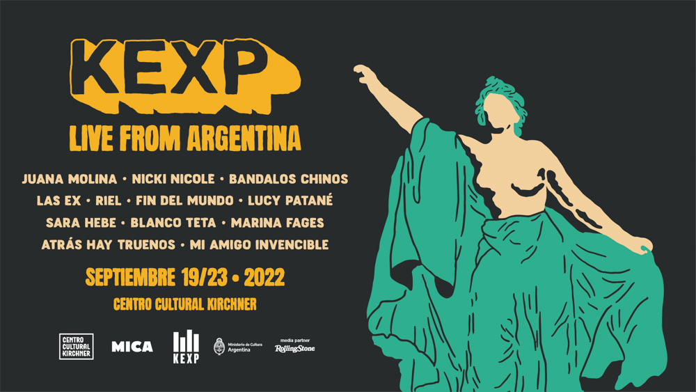 El ciclo de sesiones musicales en vivo KEXP llega al Centro Cultural Kirchner, del 20 al 23 de septiembre, con las presentaciones de Lucy Patané, Sara Hebe, Bandalos Chinos, Riel, Blanco Teta, Las Ex, Fin del Mundo, Mi amigo Invencible, Atrás Hay Truenos, Marina Fages, Juana Molina y Nicki Nicole.