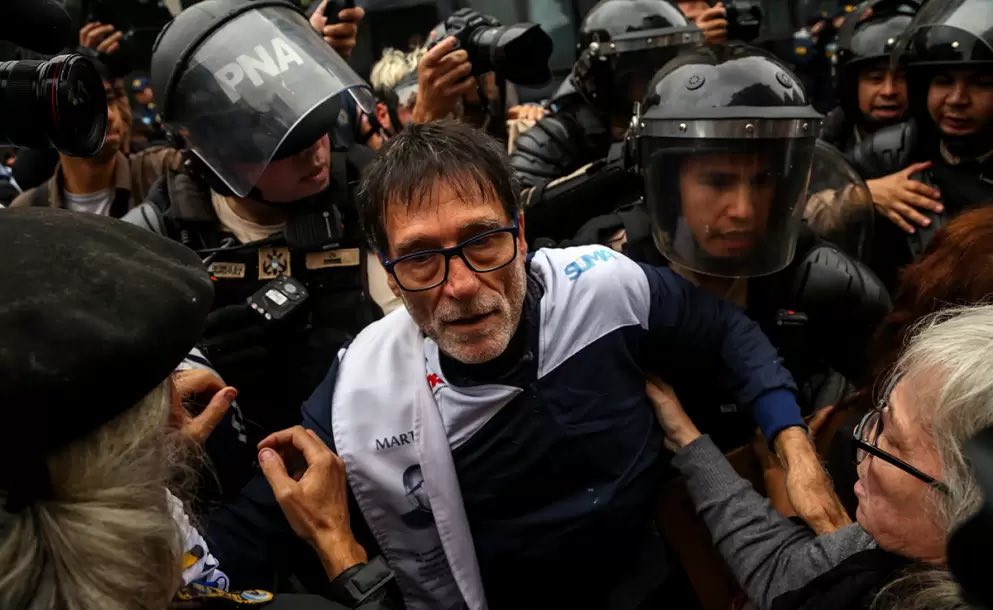 La vergonzosa y violenta detención del Padre Paco, quien acompaña las marcha de jubilados desde sus comienzos; el sacerdote criticó el “ensañamiento” con los jubilados y reclamó por la aberrante situación social del país. Además la violenta y descontrolada policía de Patricia Bullrich, golpeo a jubilado y manifestantes; detuvo a varios de ellos y a un trabajador de prensa.