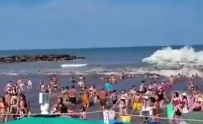 La tarde del lunes se vio alterada en Santa Clara del Mar por un episodio poco frecuente, debido a que turistas y vecinos advirtieron un comportamiento anómalo del mar, que primero se retiró de forma repentina y luego regresó con una seguidilla de olas de gran tamaño que avanzaron sobre la playa California Beach.